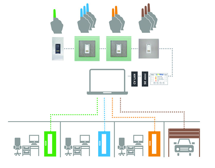ekey net ist ein netzwerkfähiges Zutrittskontrollsystem für bis zu 80 Fingerscanner. Von der Büroeingangstür über den Serverraum bis hin zum Labor können Sie damit alle Bereiche eines Unternehmens zusammenfassen und zentral über den PC verwalten. Über eine benutzerfreundliche Software werden Personen aufgenommen und innerhalb frei definierbarer Benutzergruppen organisiert. ekey net unterstützt eine Reihe von Schnittstellen zur Anbindung an Fremdsysteme (z.B. Gebäudesteuerung, Zeiterfassung, Druckermanagement, WIEGAND-Systeme, etc.).