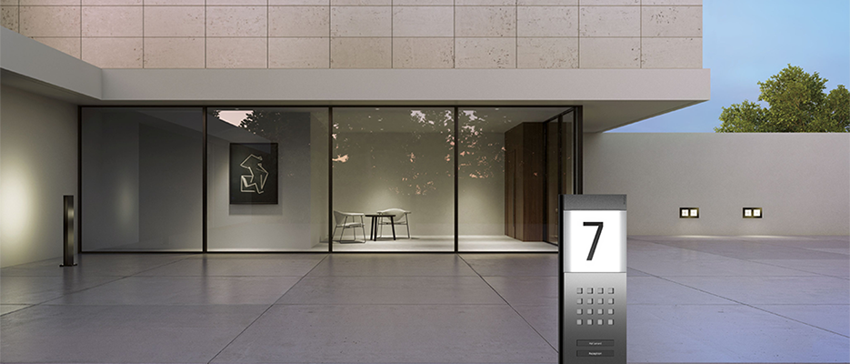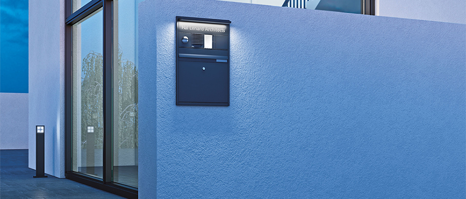 Sehen: Den Besucher, den Fußweg, den Briefkasten, die Haustür. Und gesehen werden: das Firmenschild, die Hausnummer, das Namensschild, die Bedientasten. Siedle-Kommunikationssysteme setzen sich und ihre Umgebung ins richtige Licht.